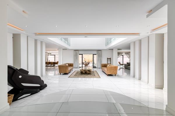 To the right, youre welcomed into a sophisticated TV lounge, complete with a beautifully fitted bar. On the opposite wing, culinary dreams come alive in the avant-garde kitchen, appointed with only the finest appliances and finishes the market has to offer. A separate scullery ensures your kitchen remains pristine while hosting.