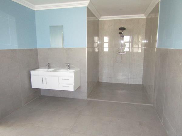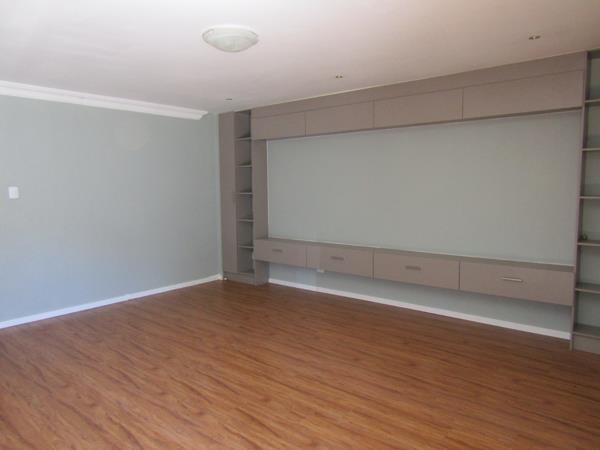 Glass door leads to 3 large, fully tiled open-plan reception areas & study / office area, all leading out to the garden & entertainment area with deck & pizza oven braai