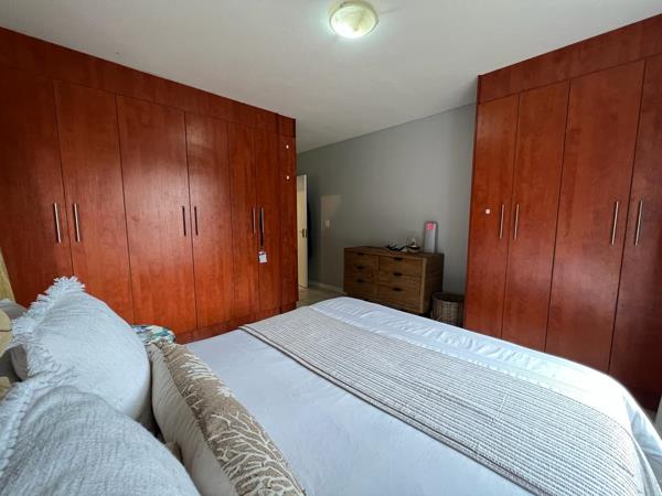 The main bedroom is generously sized, offering ample built-in cupboards and a stylish en-suite bathroom with a bath. A second bedroom is located just down a short passage, served by a modern guest bathroom with a shower.