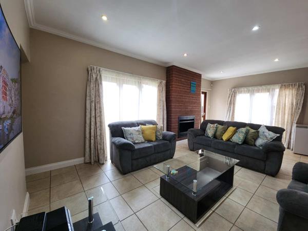 This charming 3-bedroom, 2-bathroom cluster home offers comfort, convenience, and peaceful living. Designed for modern family life, it features an open-plan kitchen, lounge, and dining area that flows seamlessly into a cozy space anchored by a roaring wood-burning fireplace.