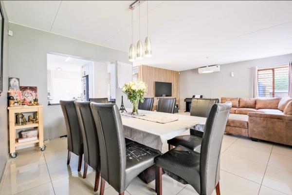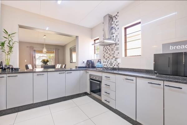 Welcome to this lovely 3-bedroom, 2.5-bathroom home available for rent in a secure complex. Inside, you''ll find a modern kitchen with sleek grey cabinetry, black granite countertops, a gas hob, and a handy pantry. The open-plan living and dining areas are super inviting, featuring stylish tiled flooring, an aircon, and wooden slat accent wall in the lounge perfect for relaxing or entertaining.