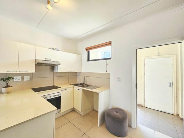 A Home Away From The Hustle And Bustle.. This charming ground-floor unit features a cozy 1-bedroom layout with a full bathroom, offering both comfort and convenience. The modern kitchen boasts sleek Caesarstone countertops and has space for one under-counter appliance, seamlessly flowing into the open-plan living area. The spacious living room opens up to a covered patio, perfect for outdoor relaxation, with serene views of the well-maintained communal gardens. The complex also offers a refreshing swimming pool for residents to enjoy.