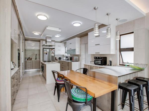 You are welcomed by only the best! Enter the home through an imposing double entrance and a beautiful custom-made front door. SA Homeowner magazine: This architecturally designed home has been designed with innovative attention to create an energy-efficient and sustainable environment. Offering every home comfort, whilst providing great use of space and proportion, the double volume entrance hall and double sweeping staircases to three bedrooms upstairs, give every bedroom a personality of its own, with each space being utilised to its full potential.