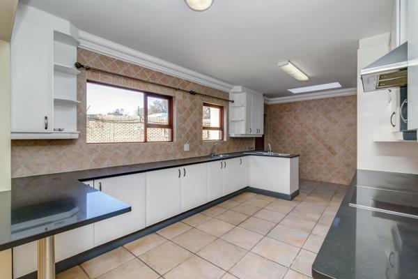 Solidly constructed home for rent in Dainfern golf estate. A large family home featuring spacious reception rooms, open plan with the kitchen, which lead to the patio, swimming pool, and spacious garden. With a private study downstairs and four bedrooms upstairs, the main bedroom is en-suite, and 3 bedrooms share 2 bathrooms. Double garage and staff accommodation.