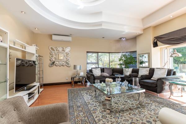 The kitchen is a Chefs delight with loads of space, eat-in area plus a breakfast nook, centre island, solid wood cupboards, gas oven, views of private garden area and separate laundry and scullery. Downstairs is a guest suite in its own separate wing to the rest of the house, study and guest toilet. Upstairs comprises a further 3 bedrooms, 3 bathrooms, 2 en-suite. One bedroom has its own walkthrough study/lounge with access onto a balcony overlooking the park. Plus, double staff accommodation, 3 garages, alarm, air-conditioning and fibre installed. Rent excludes the estate levy, pool & garden service, and utilities.