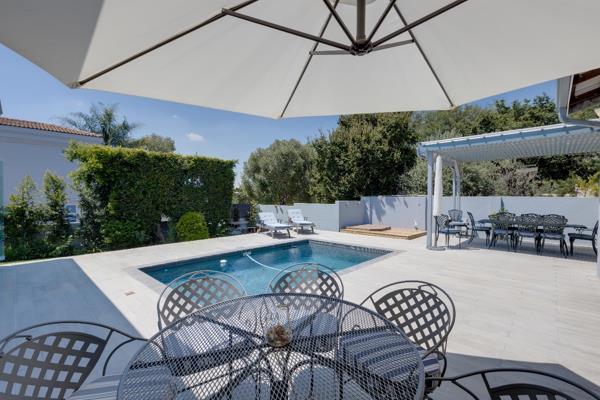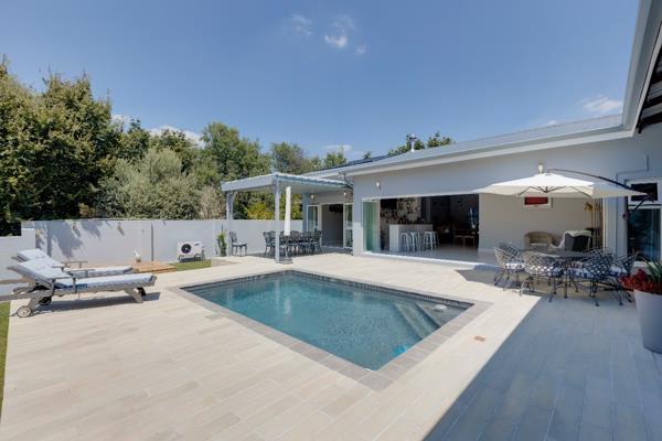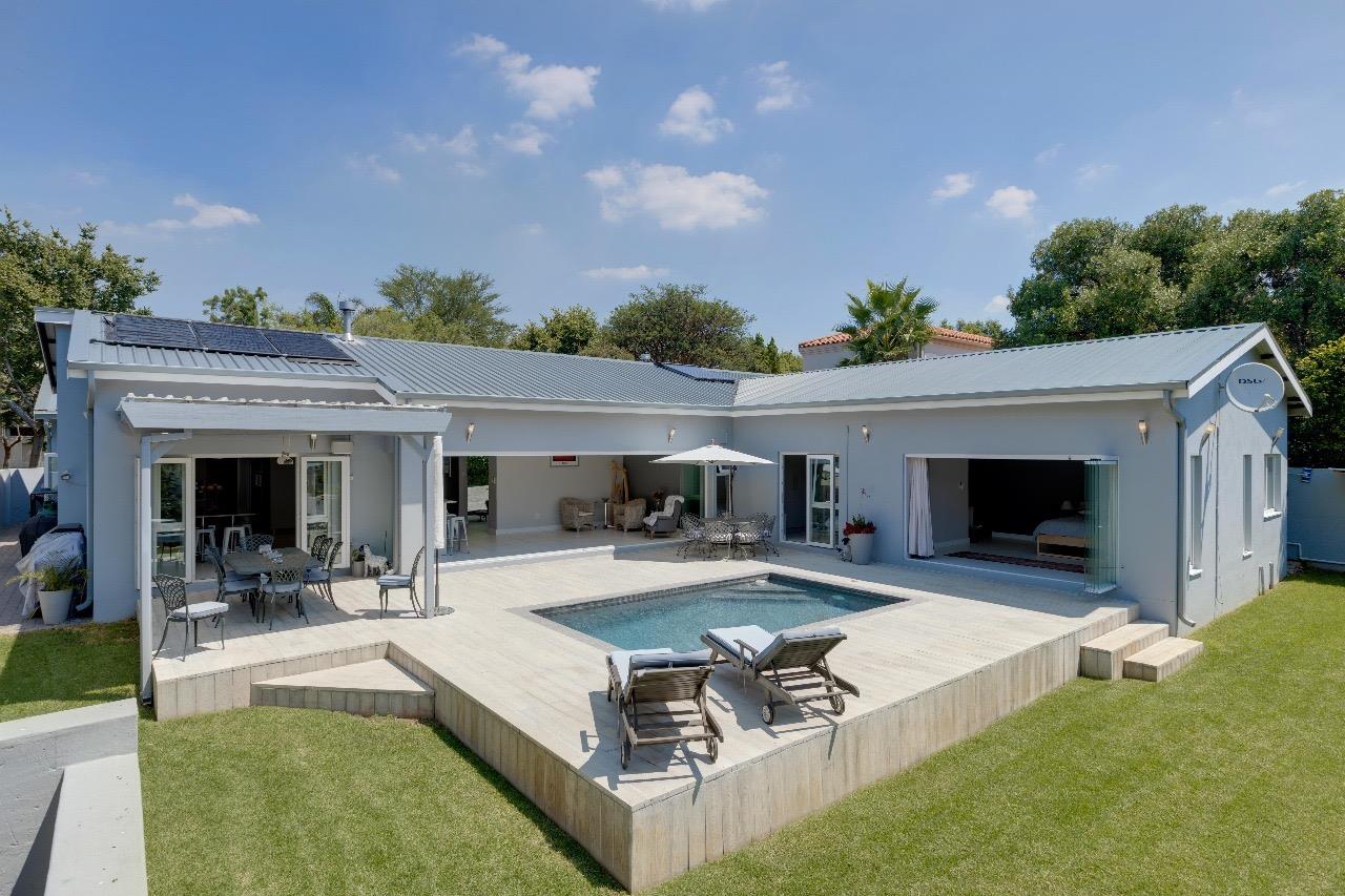 This beautifully renovated single-storey home, set on a prime corner stand in Dainfern Golf Estate, offers a seamless blend of modern luxury and effortless living. With four spacious bedrooms and three stylish bathrooms, the home features open-plan living areas that flow onto a wooden deck and manicured gardenperfect for entertaining. The gourmet kitchen, complete with a central island, anchors the space with elegance and functionality. Premium finishes include double-glazed uPVC windows, frameless stack doors, wood-burning fireplaces, and air conditioning throughout, with an inverter unit in the master suite.
