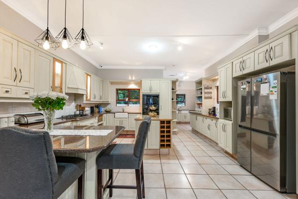 Downstairs, a guest suite with its own full en-suite bathroom ensures privacy and comfort for visitors. A dedicated study offers the perfect work-from-home setup. The large dining area flows seamlessly into a spacious kitchen, equipped with ample storage, abundant countertop space, a center island, and a breakfast bar making it the true heart of the home. A separate scullery keeps the living areas neat and organized.