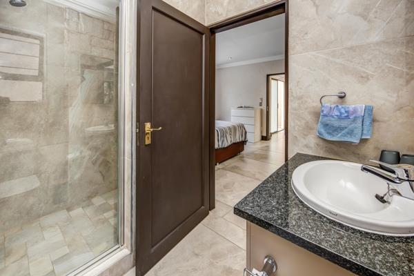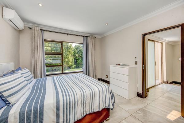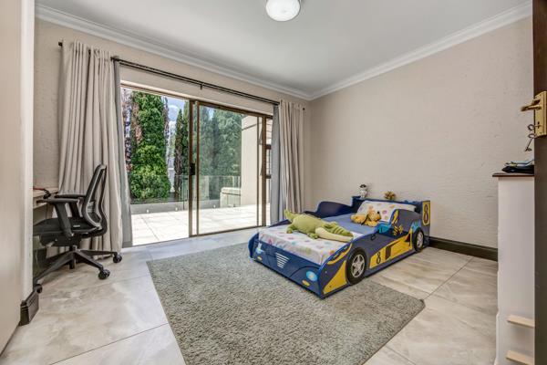 Step into the quintessential Dainfern Golf Estate lifestyle at 676 Willowgrove Road, a magnificent double-storey family residence set on a large, private 906 sq/m stand. This substantial sq/m home combines contemporary elegance with expansive living areas, perfect for a modern family. The impressive entry sets the tone with a double-volume foyer and a sleek glass-and-steel balustrade staircase, all finished with luxurious, light marble-look tiling that flows throughout the ground floor. The ultra-modern kitchen is a focal point, boasting a large quartz-topped centre island/breakfast bar and a combination of wood-grain and white cabinetry. It seamlessly connects to the tiled dining area, which features a striking black fireplace and leads via glass sliders to the covered patio and pool. The home provides multiple reception areas, including a versatile room currently set up as a playroom and a separate informal lounge. The 4 estimated bedrooms are spacious, with the master suite featuring a large air-conditioner, access to a private balcony, and a fantastic walk-through dressing area lined with extensive, light-taupe built-in cupboards and a dedicated study nook. The 4 estimated bathrooms are luxuriously appointed the primary bath features an oversized soaker tub, a separate glass shower, and a double-basin vanity set on black granite. Outdoors, the large, manicured garden is secure and private. The substantial swimming pool is flanked by a spacious covered patio, creating an ideal indoor-outdoor entertaining zone. Enjoy the peace of mind and world-class amenities of the Dainfern Golf Estate, including unparalleled security and recreational facilities.