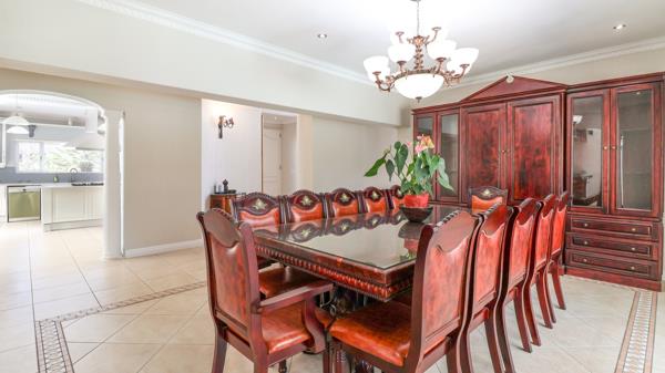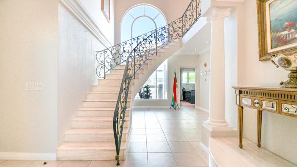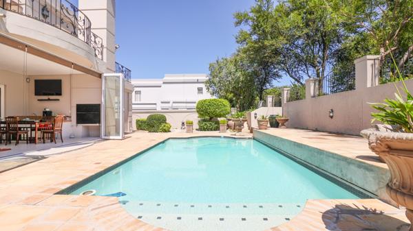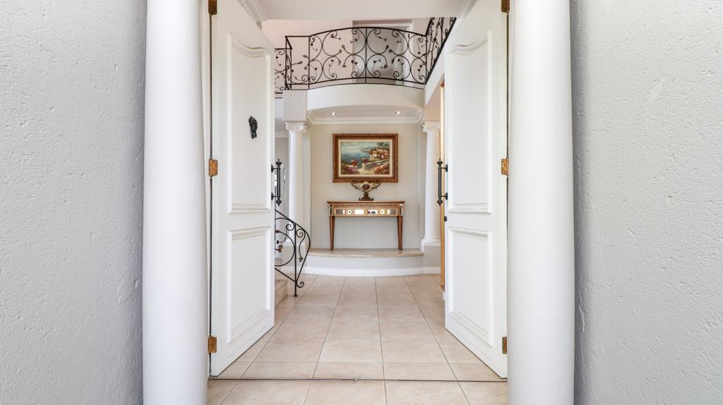 The home features four en-suite bedrooms three upstairs with a pajama lounge in the main suite, and one downstairs for added privacy. Living and entertaining are made easy with four reception areas, an enclosed patio with stack-away doors, and a built-in braai and bar area for seamless indoor-outdoor use.