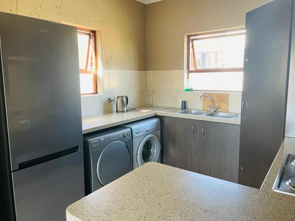Step into a bright open-plan living area that flows seamlessly into the modern kitchen, fitted with ample cupboard space and sleek finishes. The lounge extends onto a private balcony, offering the perfect spot to enjoy morning coffee or unwind after a long day.