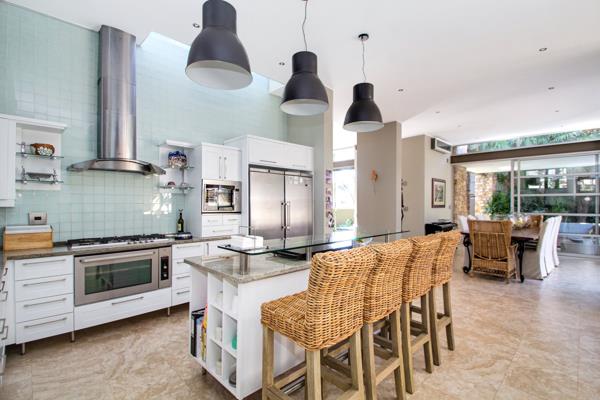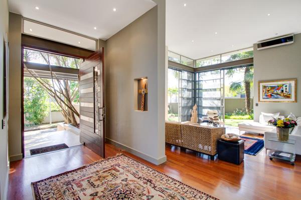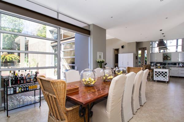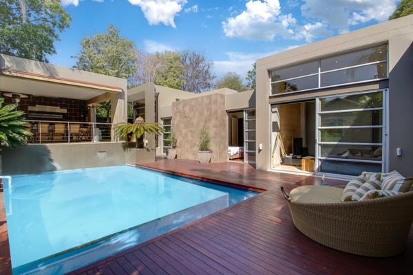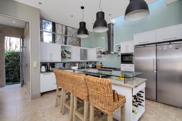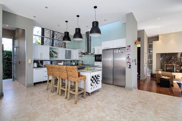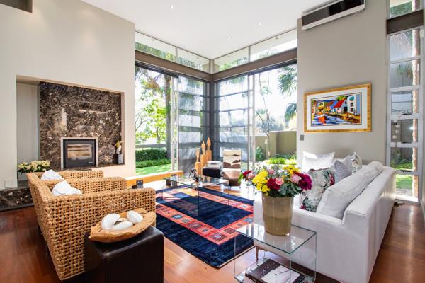 This is a spectacular home where every element has been fastidiously thought through and exceptionally implemented. Crafted with uncompromising quality and meticulous attention to detail that distinguish this home as extraordinary. Boasting high volumes, large window scapes, featured fire place, feature walls and an abundance of natural light throughout the home. There are multiple open-plan reception areas that flow seamlessly allowing for integrated indoor and outdoor living, designed for both grand entertaining as well as intimate family living. The chef of the home will be delighted with the kitchen with high end appliances, centre island, open plan to the living area, plenty of natural light and work top space. The of the bedrooms are located downstairs which includes the master bedroom which has a walk-in dressing room luxury bathroom, with marble tiles and a water feature outside. The 4th en-suite bedroom is located upstairs and has its own lounge area and kitchenette.