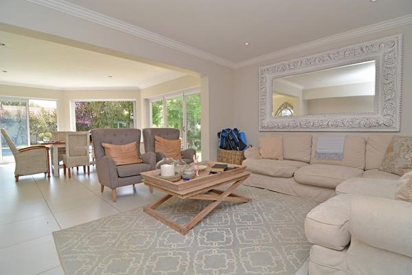 Lovely family home with 4 reception rooms and an enclosed patio with stack doors opening out to a large garden and sparkling pool.