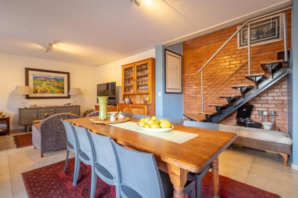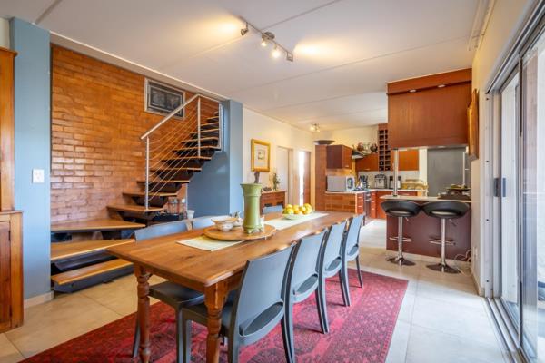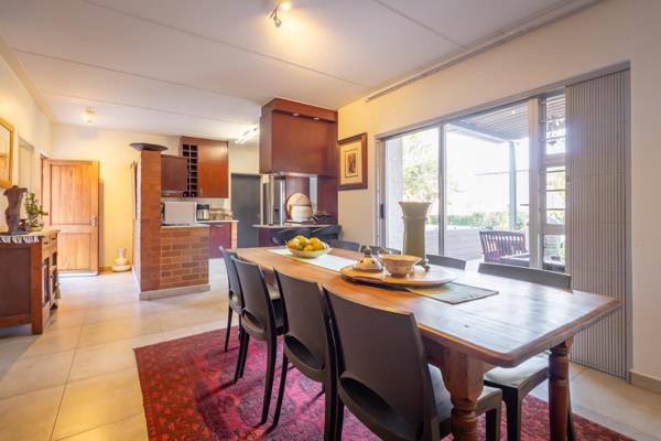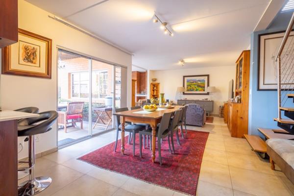 This beautiful home is perfect for a family, looking for a spacious home 196 sqm of living space with character in a secure Fourways Estate, walking distance from Fourways Life Hospital and a stones throw away from all the Broadacres and Fourways amenities. Upstairs are 3 well-sized Bedrooms, all with wood finish vinyl flooring, beautiful cupboards and aircons. The master bedroom boasts a lovely balcony and an ensuite bathroom with bath, shower and his and her basins. There is a 2ND bathroom with shower for the other 2 bedrooms to share. Downstairs, it has a light and spacious living and dining area, with an enclosed patio with built in braai which is an extension of the lounge. There is also a guest loo.