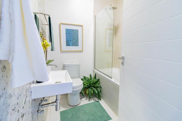 The main bedroom includes an en-suite bathroom with a shower, while the second bedroom enjoys easy access to a separate bathroom.