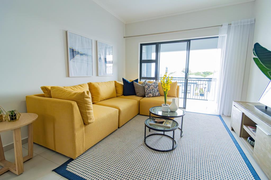 The open-plan kitchen and living area connect effortlessly to a private balcony ideal for morning coffee or unwinding at sunset. The kitchen is thoughtfully designed with a pantry, linen, and broom cupboard, plus space for three appliances. A standard gas hob is fitted, and the unit is fibre-ready for added convenience.