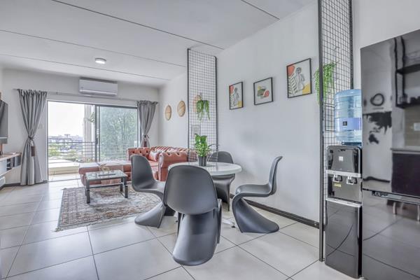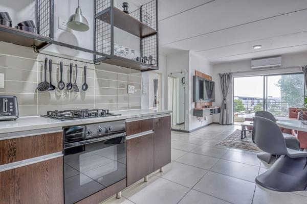 Open-Plan Living with integrated kitchen, dining, and lounge leading to a covered balcony. Modern kitchen, ample cupboard space and high-end fittings