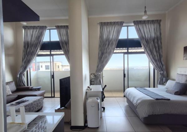 sliding doors that lead to the balcony. This unit is fiber-enabled and offers