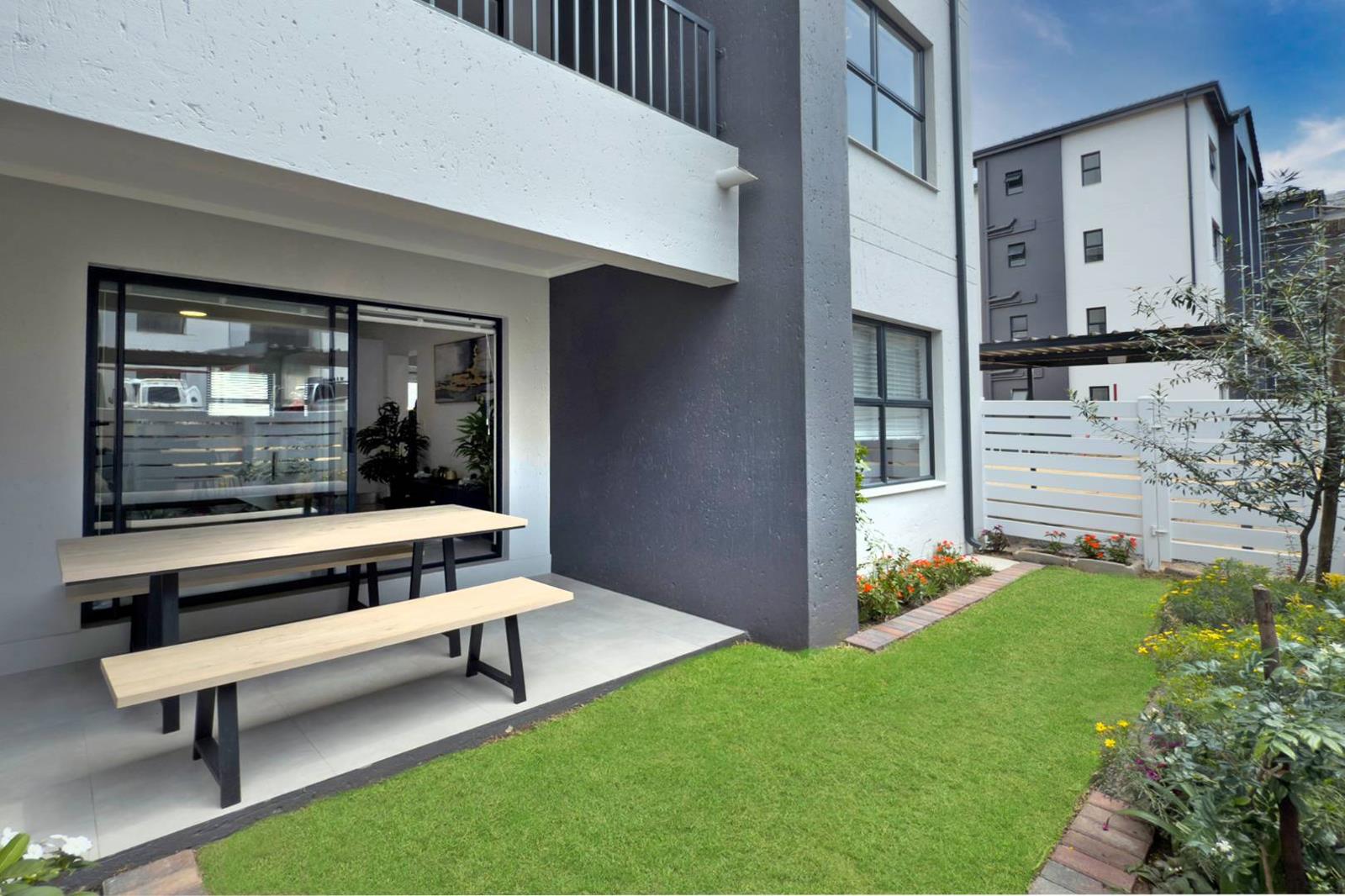 The apartment has an open-plan kitchen and large lounge that leads onto a covered patio and well manicured garden.