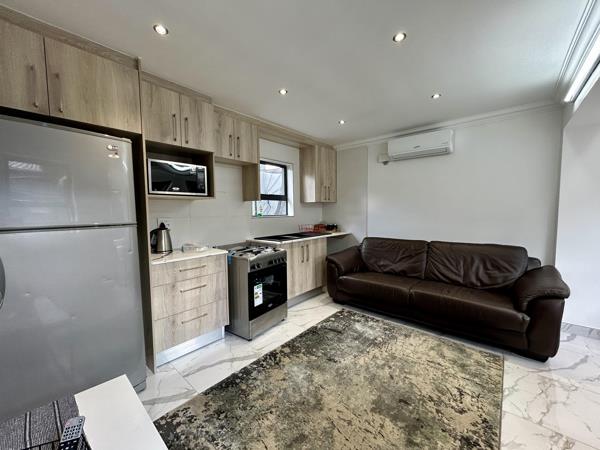 Step into this charming, fully furnished one-bedroom garden apartment in Fourways, perfect for comfortable living. The open-plan living space includes a dining area with a table and chairs, and a cozy lounge equipped with air-conditioning ideal for relaxing after a long day.