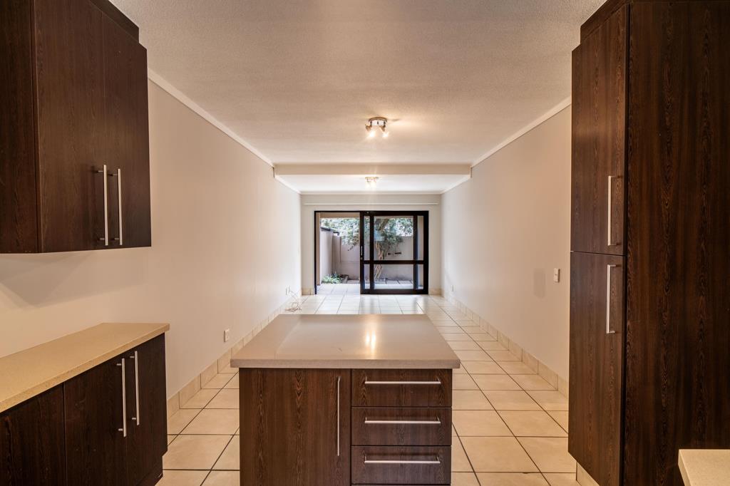 Upon entering the home you are greeted into a large open-plan living and kitchen area with plenty cupboard space, granite cabinetry and an extended centre island. It baosts space for a single appliuance and fridge. The living area could easily fit in a 6-seater dining room table as well as large lounge and TV set. It flows out seamlessly onto a private covered patio and manicured garden.