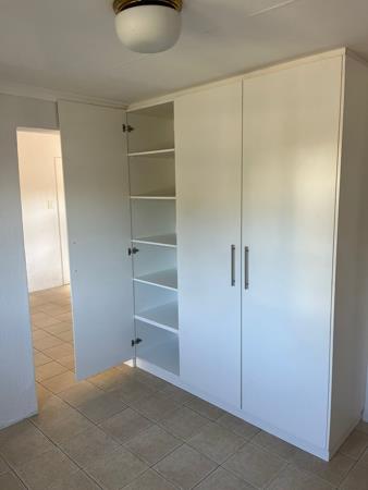 One bedroom in secure estate. This cottage offers open plan living area with a kitchenette, space for one under counter appliance & fridge as well as ample cupboard space. Built in cupboards in bedroom provides ample cupboard space.