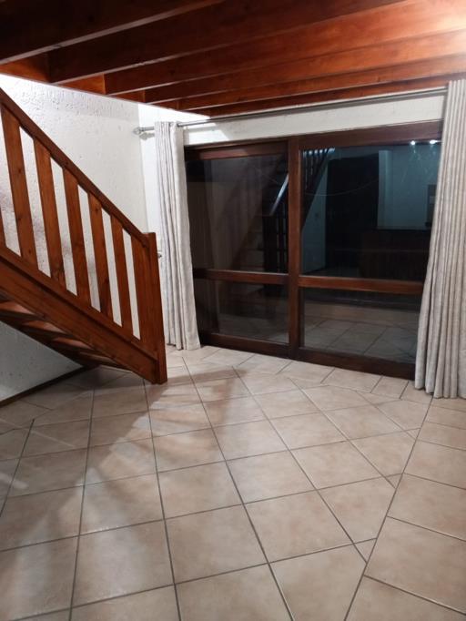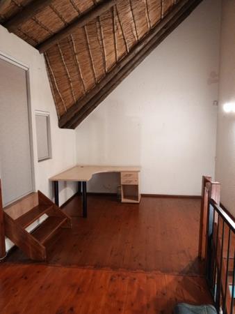 Downstairs you will find the kitchen with space for 1 wet appliance and single fridge, this leads onto the lounge area flowing onto the downstairs patio with beautiful views. You will also find a large Bedroom fitted with Blinds and laminate flooring. A bathroom with shower completes the downstairs section. The upstairs loft is well designed and allows many options for entertaining or an upstairs tv room. The loft leads out onto a balcony with gorgeous views over fourways.