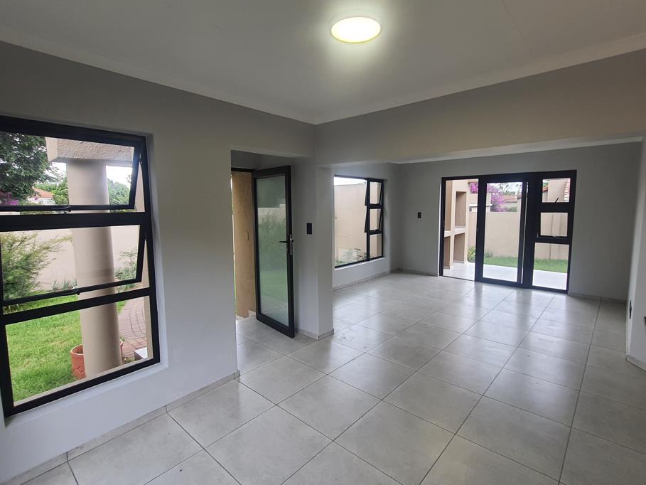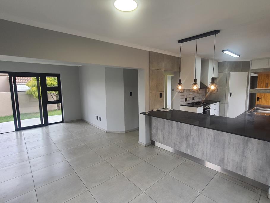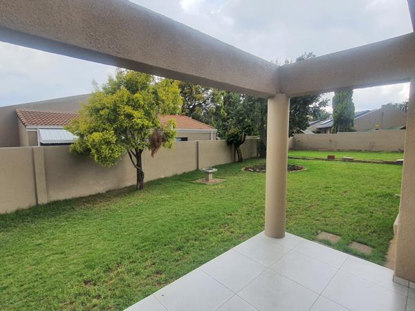 Spacious family home in a secure complex in Lonehill boasts an open plan lounge, dining room with modernized finishes throughout. The lounge opens onto a patio overlooking a massive, pet friendly wrap around, garden