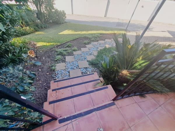 The home offers two entrances: the front entrance with double parking opens into a private garden, while the back entrance leads through the kitchen into two lounge areasone downstairs and another upstairs that flows onto a cosy, spacious balcony. The unit features an open-plan kitchen and is pet-friendly for cats only. Electricity and water are billed monthly not prepaid.