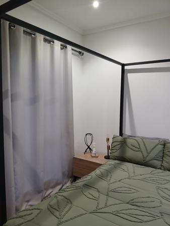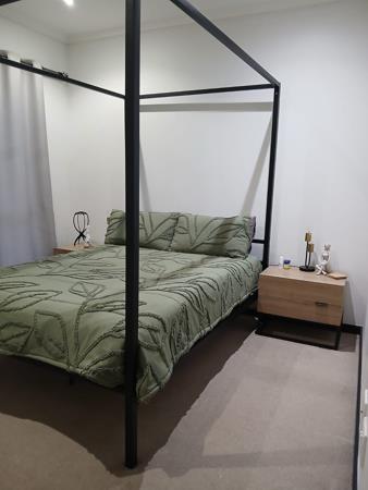 Comfortable Bedroom: Features a striking four-poster bed frame furniture may vary and excellent natural light.