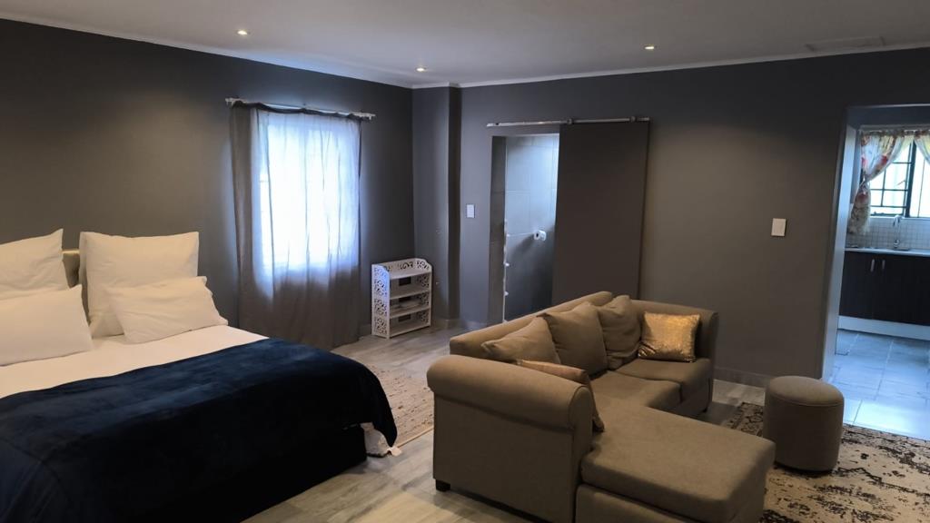 Open plan, spacious bachelor pad, semi furnished with bathroom, kitchen with built-in cupboards. Private with garden area
