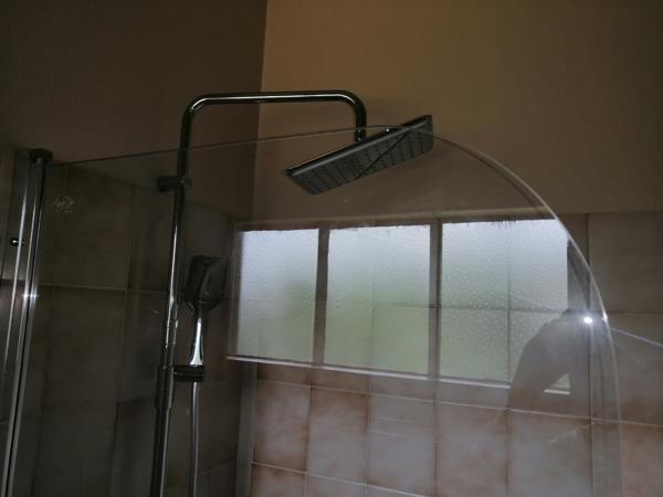 This practical bachelor unit in Paulshof, Sandton, offers a comfortable living solution. The compact kitchen and bedroom,offers All in One Living. The kitchen has an oven, hob, and extractor fan, alongside wood-look laminate countertops and a tiled backsplash. The unit has durable tiled flooring, and ample natural light, complemented by extensive built-in cupboards for storage. The bathroom has a bathshower combo, with a glass door over the bath.