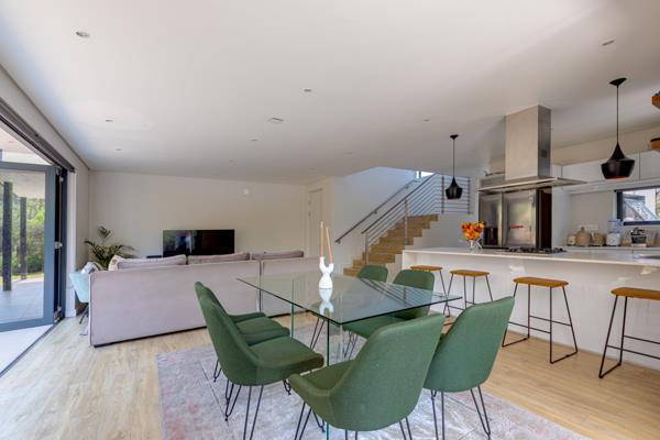 Open plan lounge, dining, and kitchen area with seamless flow to the patio