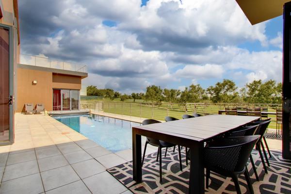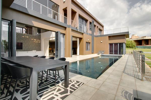 Magnificent Golf Course Residence Steyn City Perfectly positioned on the 13th T-box, this flawless five-bedroom en-suite residence commands uninterrupted golf course views and showcases a masterful blend of architectural elegance, intelligent design, and resort-style living. Every space has been thoughtfully curated for luxury, comfort, and effortless entertaining.