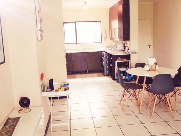 The open plan living area is big enough for a dining table and lounge suite. The lounge opens onto a covered balcony which has a built in braai and lovely view of the greenbelt. The unit also has 2 covered carports.