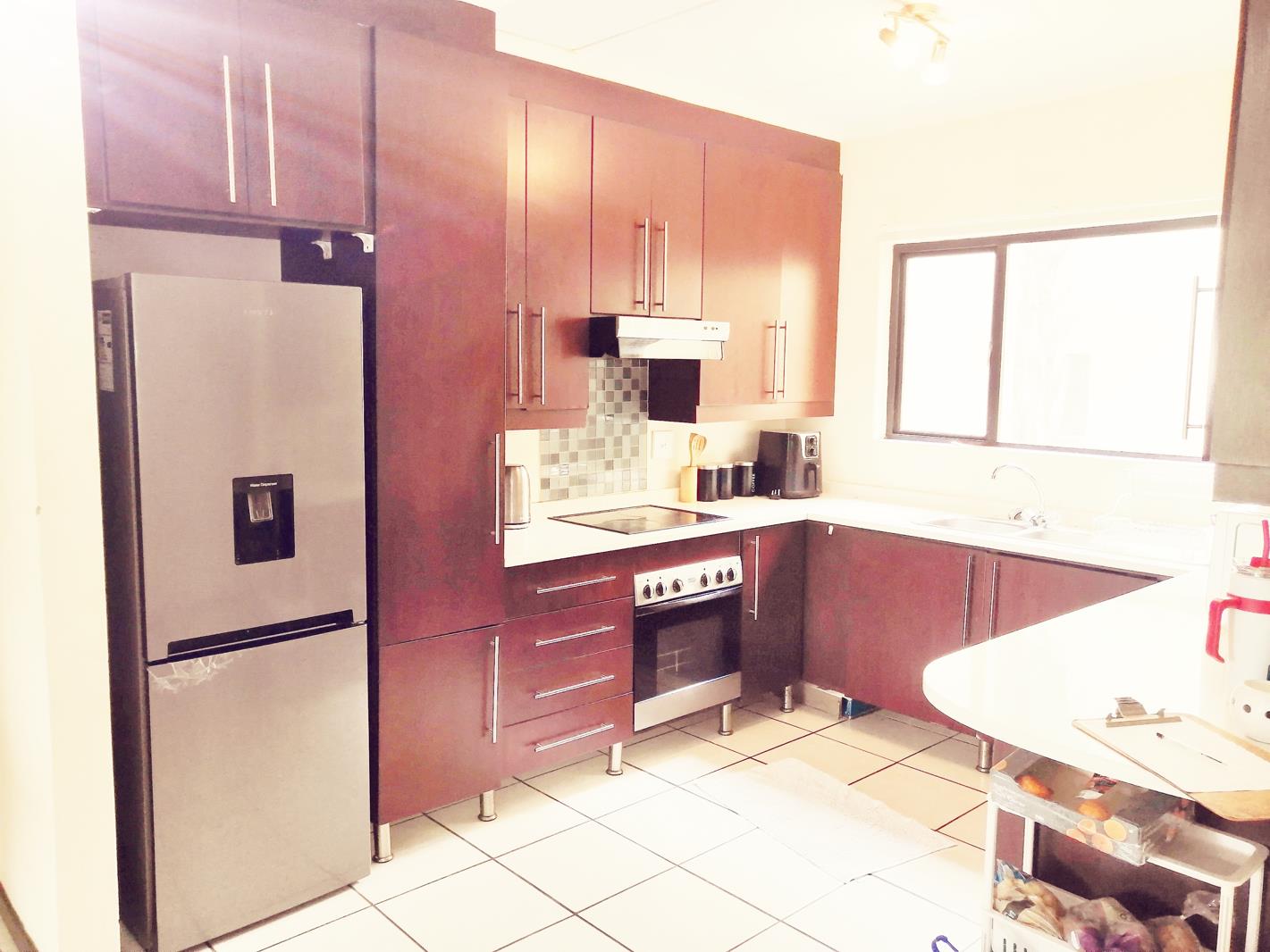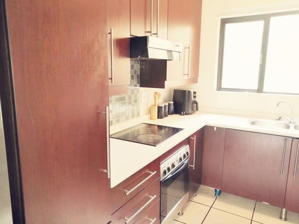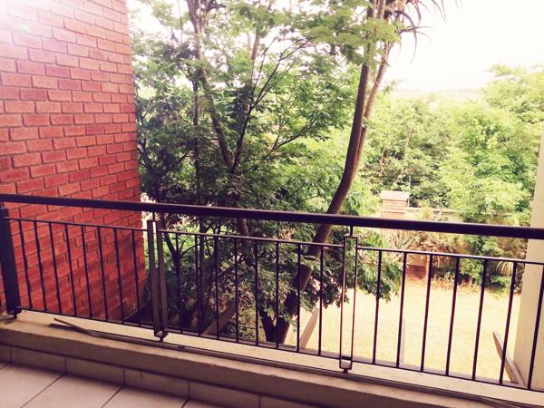 Light bright apartment in great position. Corner unit and balcony with lovely views of the green belt. Beautiful modern and spacious 1st floor apartment in Sunninghill. This apartment has 3 double bedrooms all with built in cupboards and laminate flooring. The bedrooms are serviced by 2 full bathrooms, both have a shower, and a bath, loo and basin. Double basin in main en suite. The kitchen has granite tops, a double sink, space for 2 water appliances and a single door fridge.
