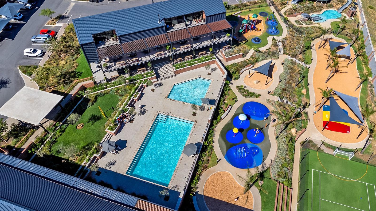 Indawo Lifestyle Apartments also offer a fully equipped gym with FREE weekly classes to help you stay active. With a multiple-purpose sports field, you can enjoy all of your favourite outdoor sports. Enjoy the large Lifestyle Hub that offers a triple story restaurant with sky bar and meeting rooms or relax by the large swimming pool. Kids will love the play parks, Super Splash Water Park, beach areas, air cushion to bounce on and plenty more activities.