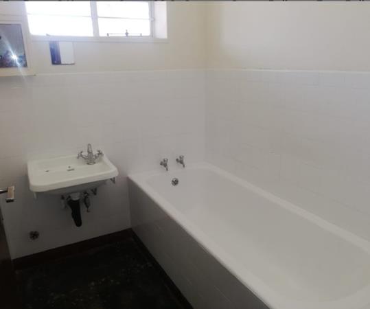 Two generously sized bedrooms with built-in cupboards provide ample comfort, while the bathroom includes a bath and basin with a separate toilet.