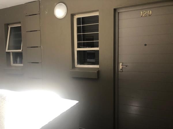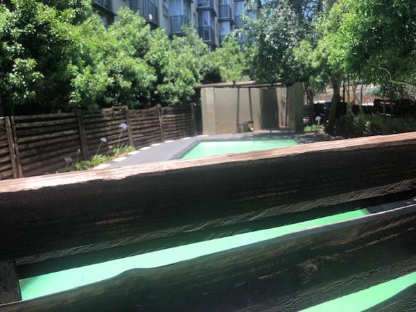The apartment features an open-plan kitchen and lounge area. The lounge leads to the bedroom and bathroom, as well as a balcony. Additional amenities include built-in cupboards, a four-plate stove, an oven, prepaid electricity, a swimming pool, and 24-hour guarded security. Public transport is easily accessible.