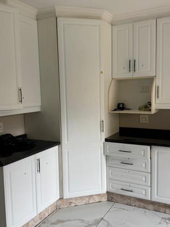 Kitchen with lots of cupboard space, granite tops electric hob and oven.