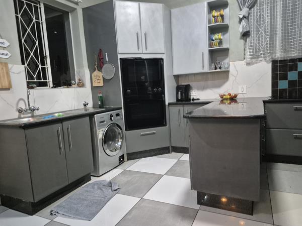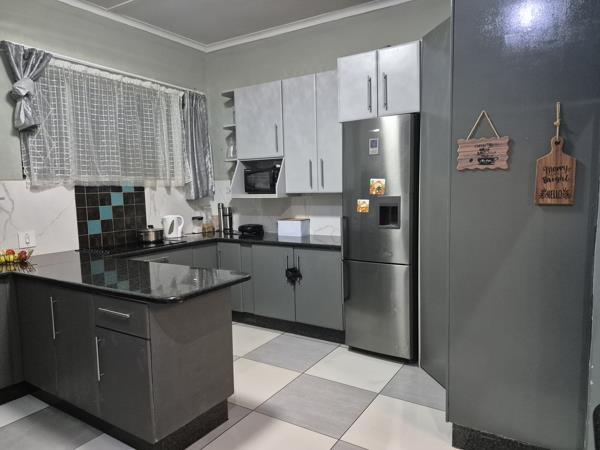 Fresh spacious kitchen with ample cupboard space, spacious living area that leads out to the garden, a covered patio which overlooks the deck for effortless outside living.