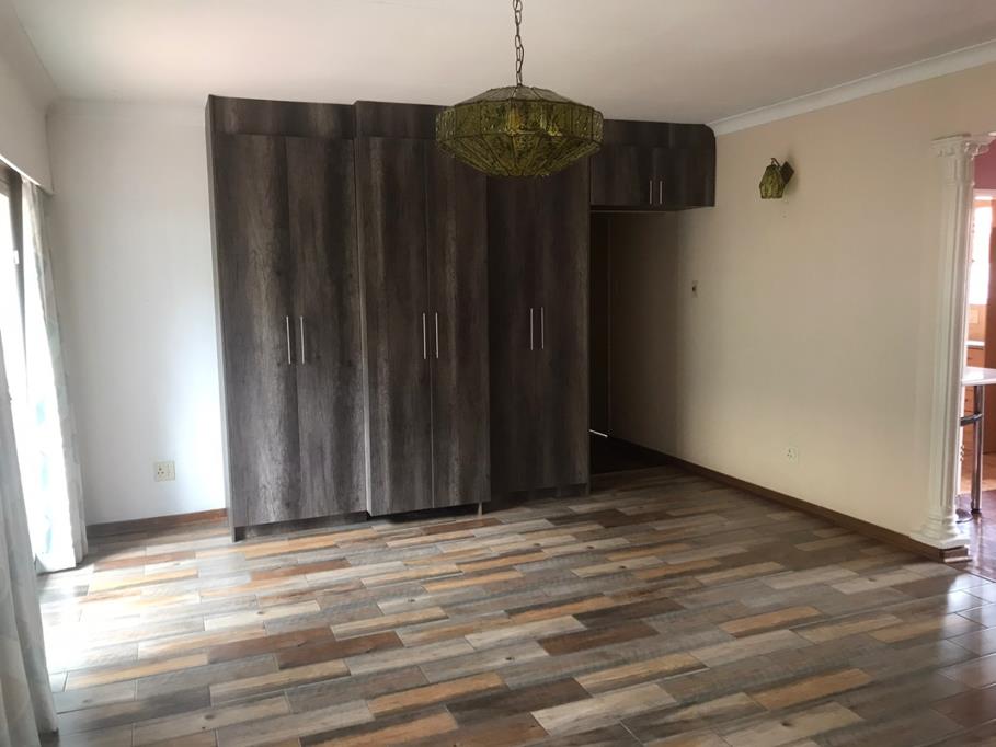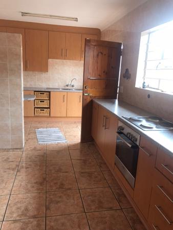 This inviting 4-bedroom, 2-bathroom home in Johannesburg offers comfortable living for families or professionals. The interior boasts modern wood-look tiled flooring throughout, creating a cohesive and contemporary feel. The spacious lounge and separate dining room provide ample space for relaxation and entertaining. The well-appointed kitchen features an integrated oven and hob, complemented by ample storage cabinets and durable tiled flooring and backsplash. Natural light floods the living spaces, enhancing the welcoming atmosphere.