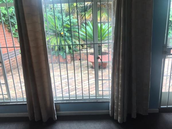 Outdoor living is catered for with a private paved patio, perfect for enjoying the established garden. The property is pet-friendly, allowing for furry companions to enjoy the space. Security is a priority, featuring an alarm system, 24-hour security, and robust security bars and gates on windows and doors, ensuring peace of mind. Parking includes a single garage and two additional parking spaces.