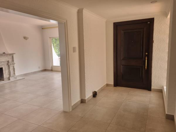 Everything is new! The interior of the mainhouse is completely renovated. Immaculate four bedroom home with spacious lounge with a magnificent fireplace leading into a large dining room with sliding doors between the two if needed. Beautiful kitchen with a gas stove, electric oven and a laundry. Stunning entertainment room opening up on three sides to the garden. The bathrooms are lovely, all coordinated with the same modern finishes. All the cupboards are new. There are stairs coming from the garage into the house.