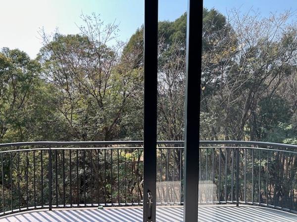 The open plan design creates flowing spaces within the unit. The lounge opens to a private balcony with views over the Royal Johannesburg golf course.