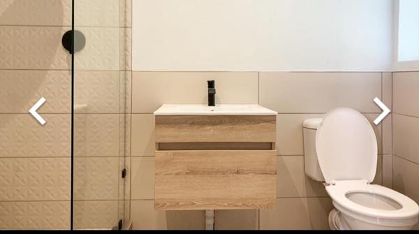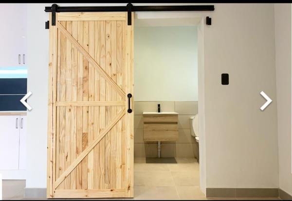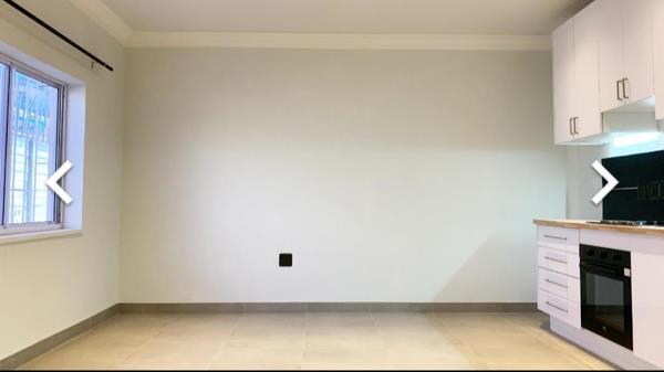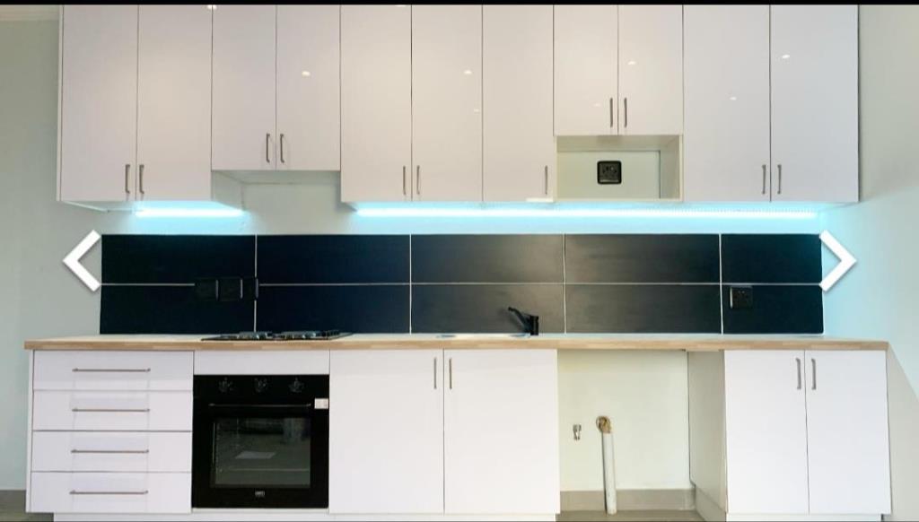 Open plan Lounge and kitchen with stove and ample cupboard space
