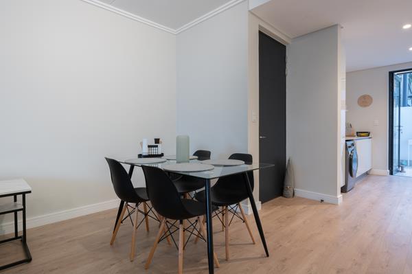 This stunning ground-floor apartment offers open-plan living with an abundance of natural light, creating a sense of spaciousness and tranquility. The interior boasts superior finishes, including white high-gloss built-in cupboards, laminated timber flooring, and a fully integrated kitchen with top-of-the-line Siemens appliances.