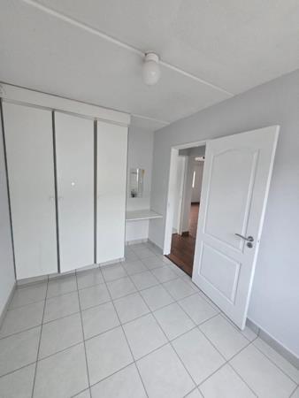 The open-plan living and dining area provides a bright and airy space, ideal for entertaining or relaxing. Both bedrooms feature built-in cupboards, offering ample storage solutions. The unit also benefits from a secure, low-maintenance setting, ensuring peace of mind and convenience.