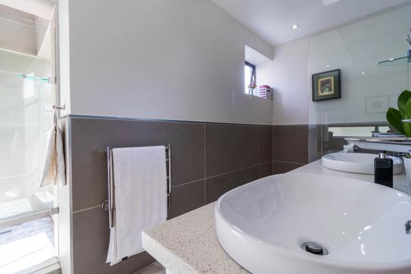 Haven of peace and serenity! . Nestled in an award-winning estate, this tranquil home radiates style and sophistication with its floor-to-ceiling glass facade and impeccable finishes. The 4 bedrooms, 3 bathrooms, executive study, and gourmet kitchen showcase meticulous attention to detail. Enjoy entertainment with a built-in bar, spacious patio, and a sparkling blue pool. Additional comforts include hydro underfloor heating and staff accommodation, adding to the allure of this exquisite residence.