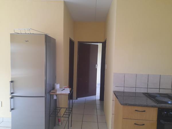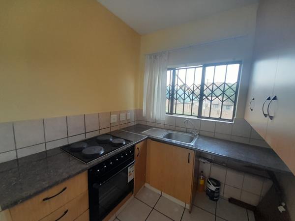 Ground floor townhouse to rent in the sought after Meredale Mews Complex in Meredale. This townhouse is tiled throughout and has an open plan lounge and kitchen, 2 bedrooms and 1 bathroom. Kitchen has built in cupboards and ample storage space. Two spacious bedrooms with built-in cupboards. The bathroom offers the bath, toilet and basin.