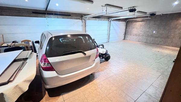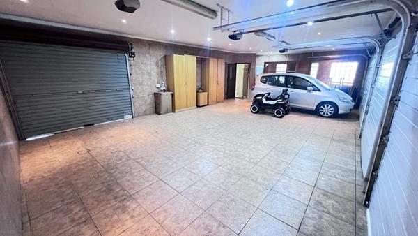 Double garage plus two single garages provide secure parking for up to four vehicles, with an additional storeroom included.